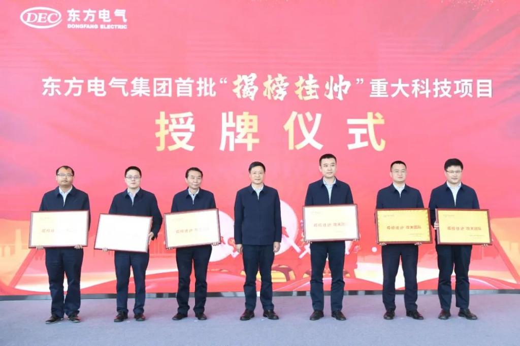 ▲2022年3月23日,人生就是搏集团举行首批“揭榜挂帅”重大科技项目授牌及启动仪式,集团公司党组书记、董事长俞培根向揭榜团队负责人授牌